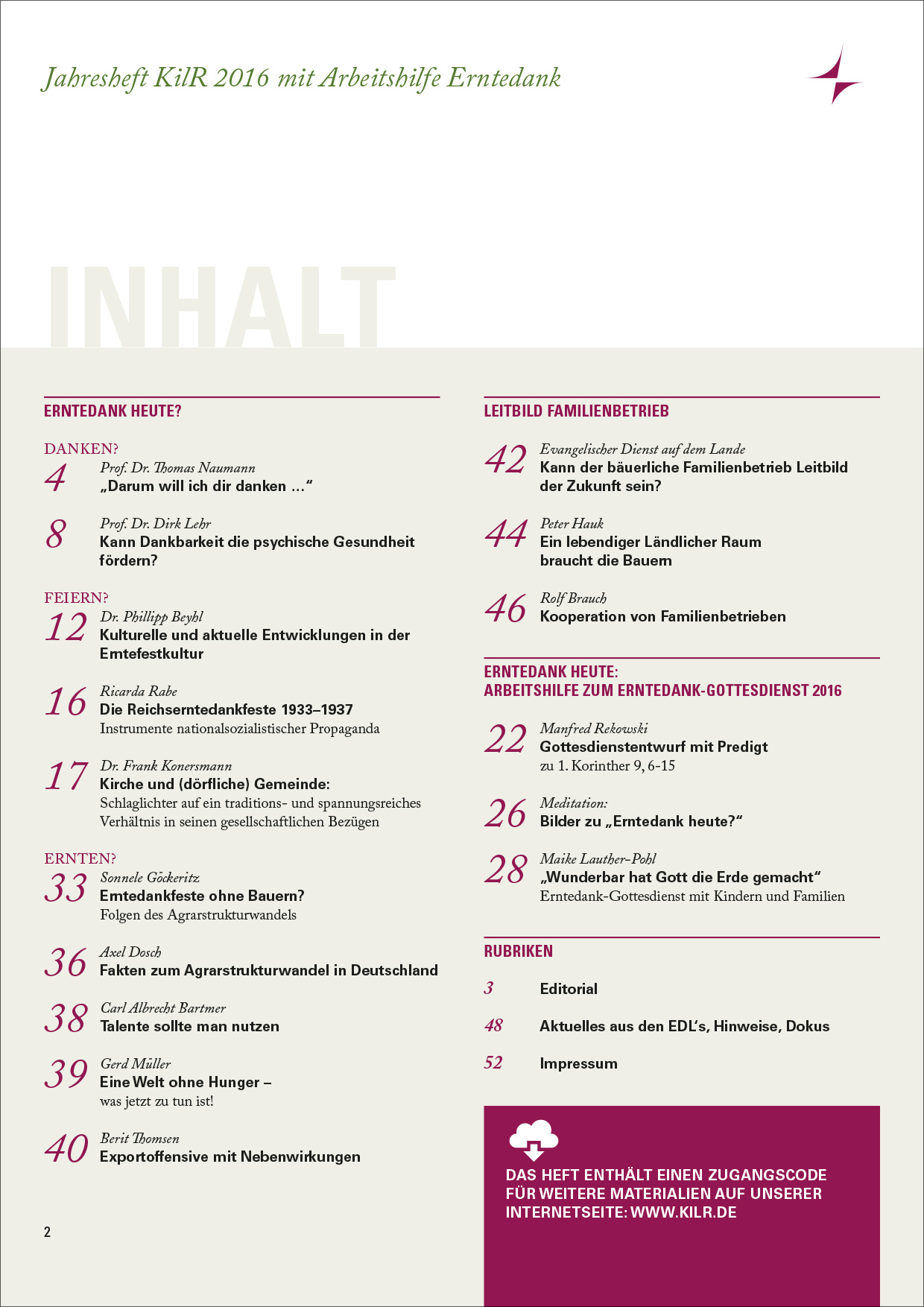 Impulse dazu bietet das neue Jahresheft Kirche im ländlichen Raum mit der Arbeitshilfe Erntedank.