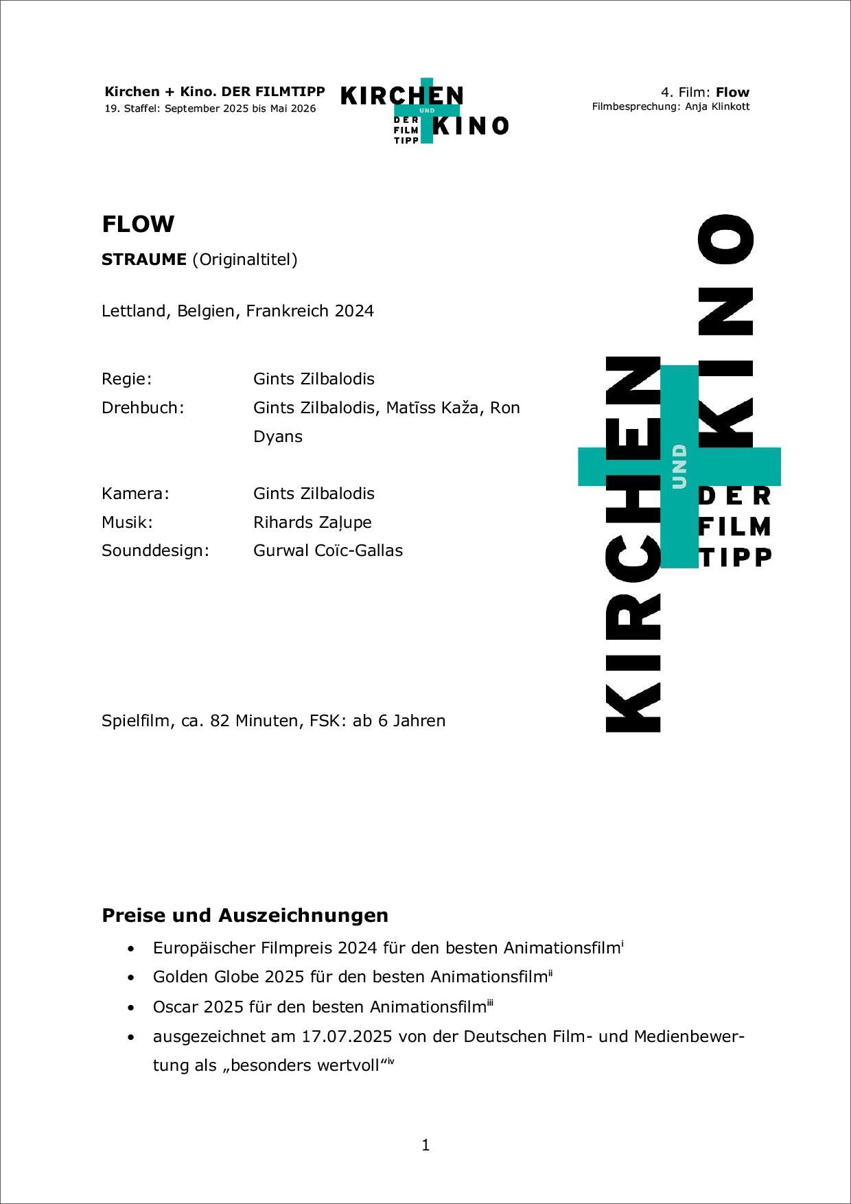 Der hier vorgestellte prämierte Film aus der aktuellen Filmreihe von 09/2025 bis 05/2026 wird im Rahmen des ökumenischen Kirchen- und Kino-Projekts gezeigt, das 2007 in Niedersachsen gestartet ist. Partner:innen, die das Projekt und die Aufführung des Films betreuen, finden hier eine ausführliche Filmbesprechung zum Download.