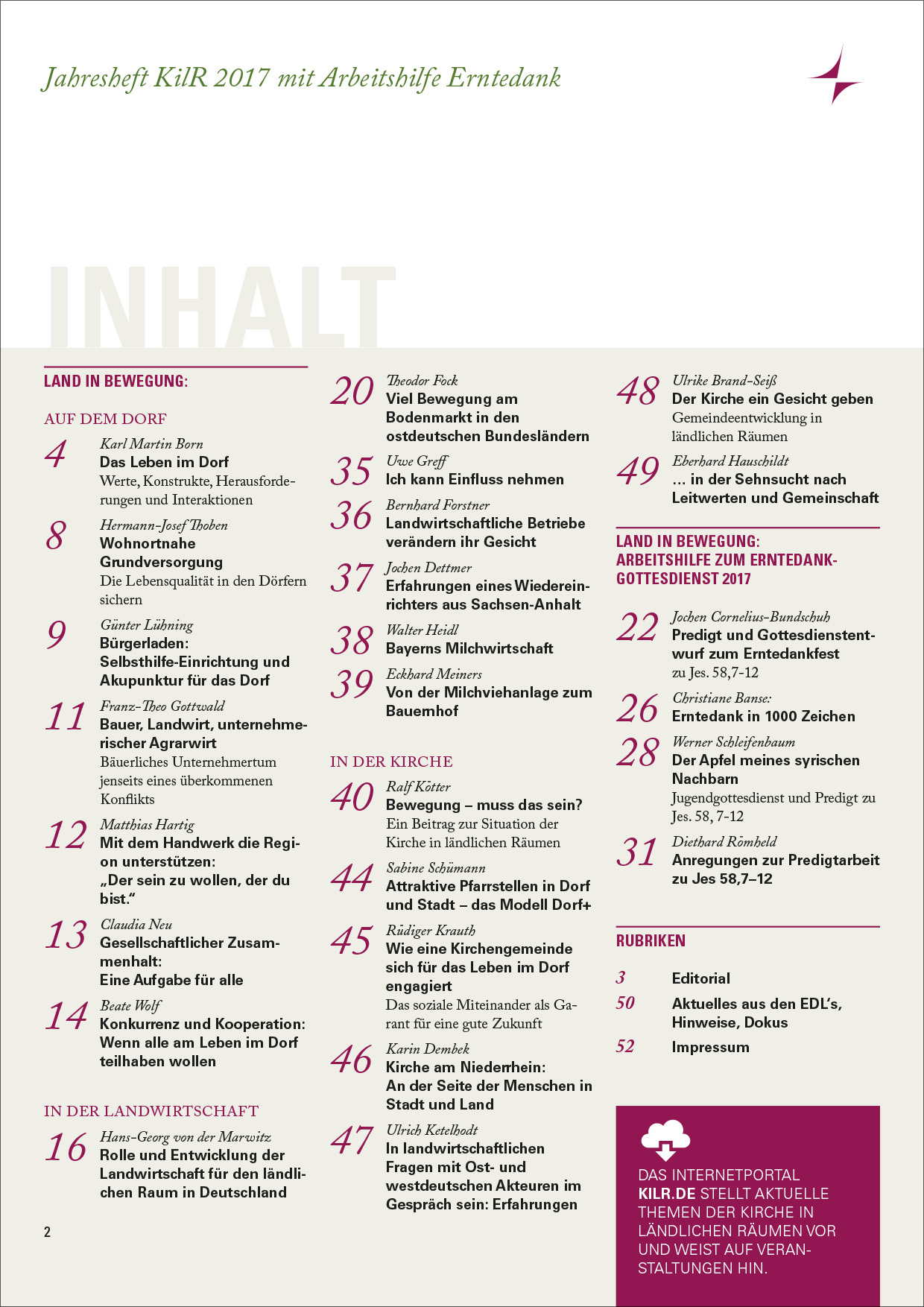 Die Veränderung beschreiben, und dabei zu entdecken: Was gibt es für Ansätze, diese Veränderung zu gestalten, welche Chancen bieten sich dabei, damit beschäftigt sich das aktuelle Heft „Kirche im Ländlichen Raum“. Außerdem zu finden: Ein Entwurf für einen klassischen Erntedankgottesdienst und für einen Jugendgottesdienst.